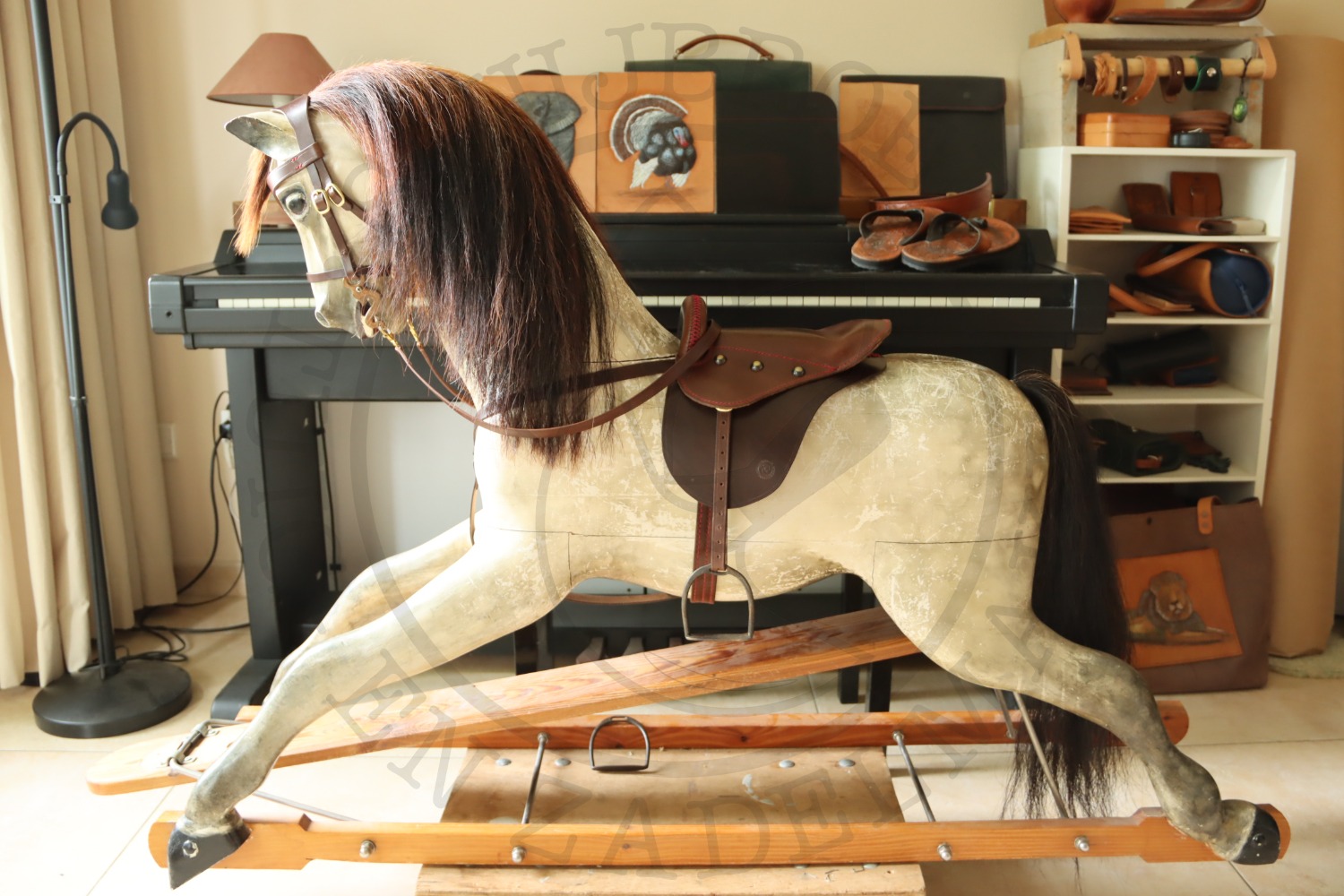 Ik maak wel hoofdstel, borsttuig en zadel voor hobbelpaarden op maat.