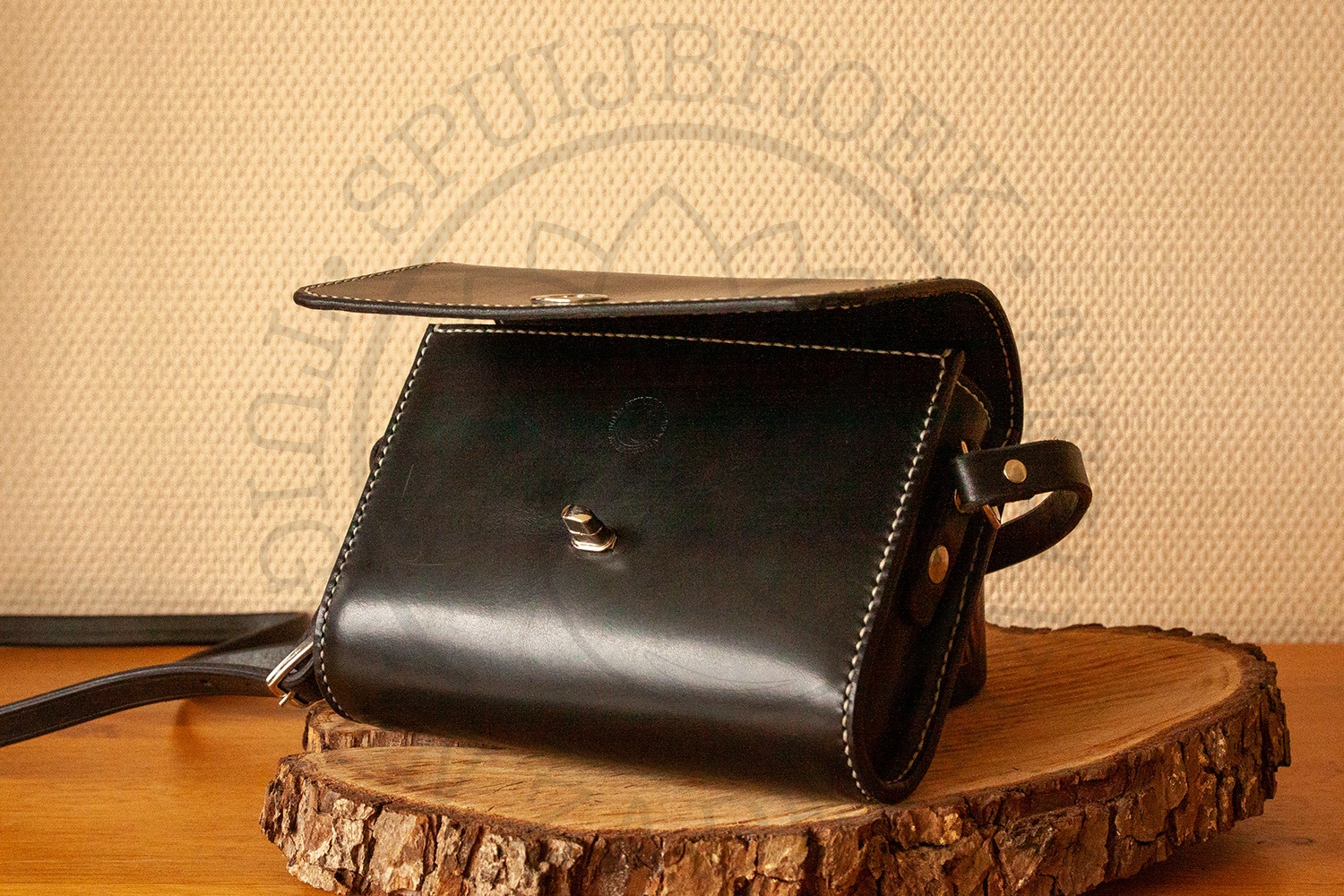 Het 2e model is gemaakt van 1,5mm dik zwart vegetaal gelooid tuigleder en gevoerd met varkensleder.